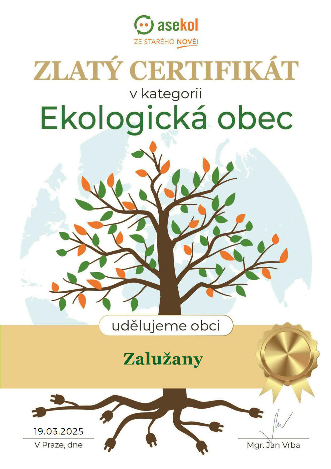 Certifikát Ekologická obec